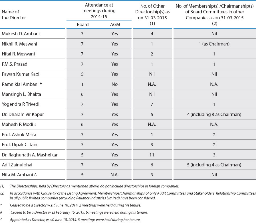 He is a Director of Reliance Industrial Investments and Holdings Limited and Reliance Commercial Dealers Limited. He is a member of the Audit Committee and Nomination and Remuneration Committee of Reliance Commercial Dealers Limited.