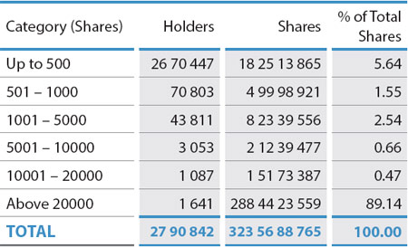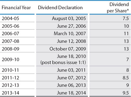 On stand-alone basis, we have grown by a Compounded Annual Growth Rate (CAGR) of Revenues 25.8%, EBITDA 26.4% and Net Profit 27.4%. The financial markets have endorsed our sterling performance and the market capitalization has increased by CAGR of 31.7% during the same period. In terms of distributing wealth to our shareholders, apart from having a track record of uninterrupted dividend payout, we have also delivered consistent unmatched shareholder returns since listing. The result of our initiative is our ever widening reach and recall. Our shareholder base has grown from 52,000 after the IPO to a consolidated present base of around 2.8 million.
