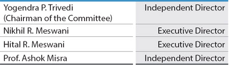 He is a member of the Corporate Social Responsibility and Governance Committee, the Finance Committee and the Stakeholders’ Relationship Committee of the Company.