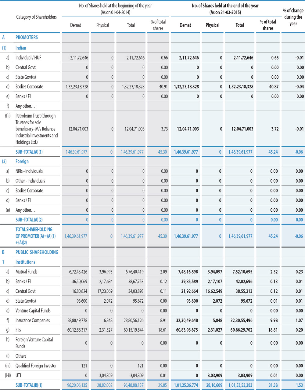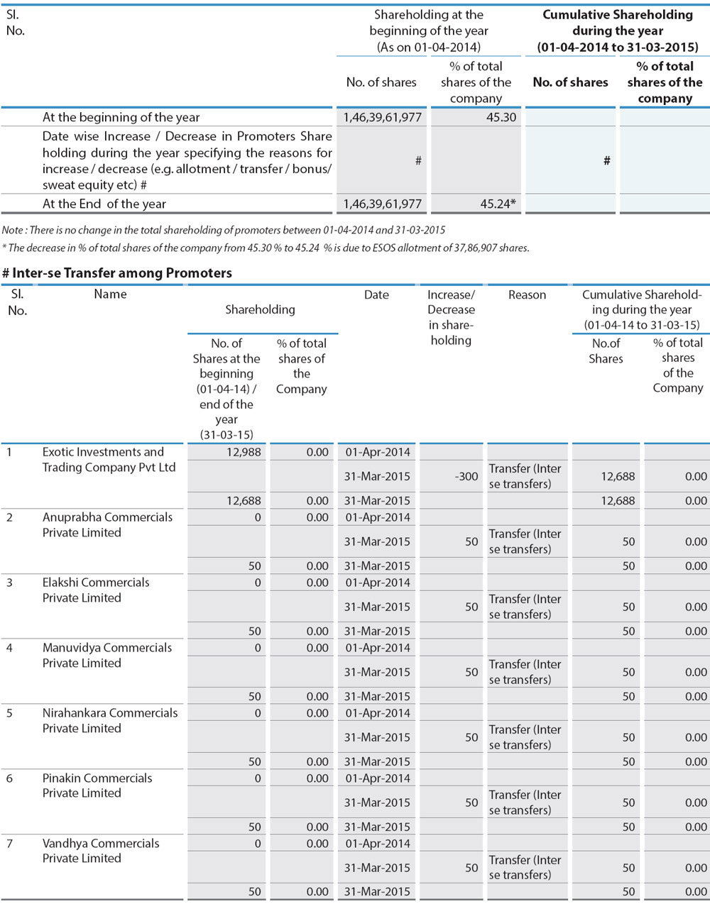 ii) Shareholding of Promoters