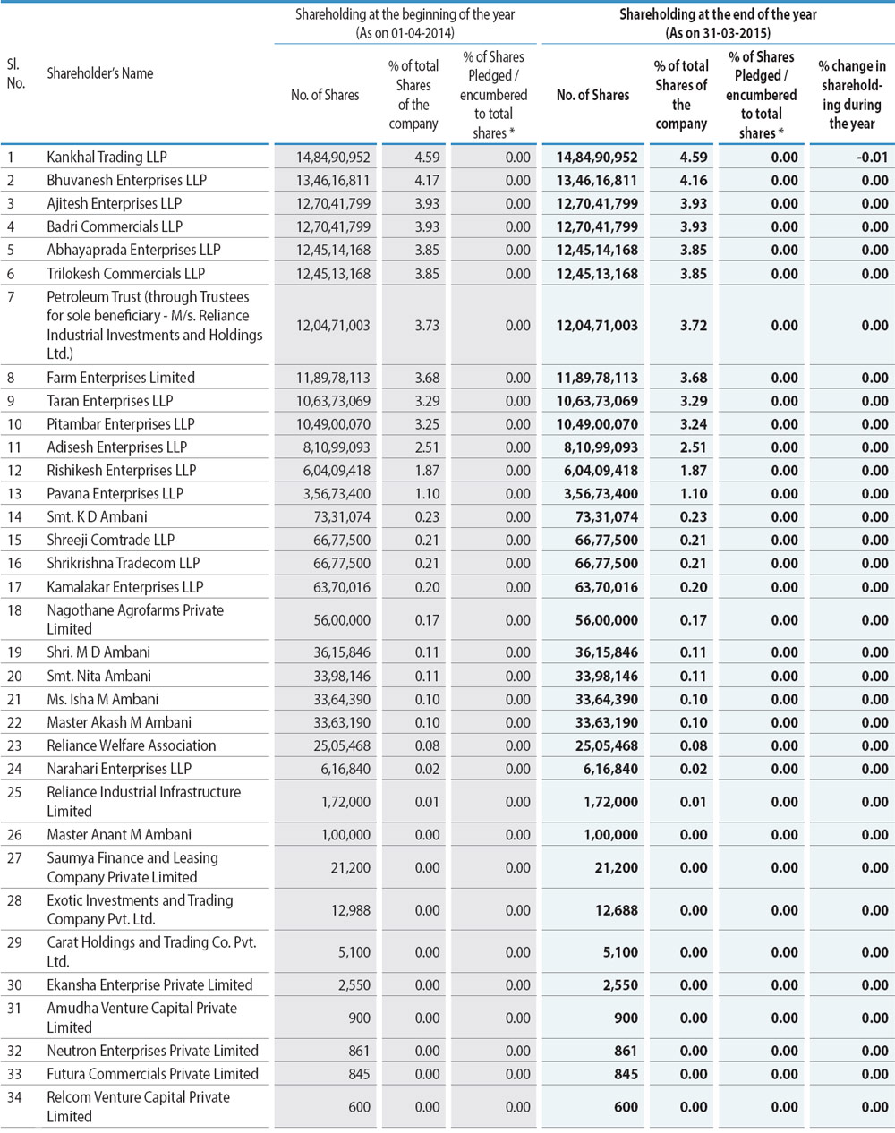 The capital expenditure of Reliance on a consolidated basis for 2014-15 was ` 1,00,247 crore including exchange rate difference capitalization. The capital expenditure was principally on account of ongoing expansion projects in petrochemicals and refining business at Jamnagar, Dahej and Hazira, Broadband access and US Shale gas projects.