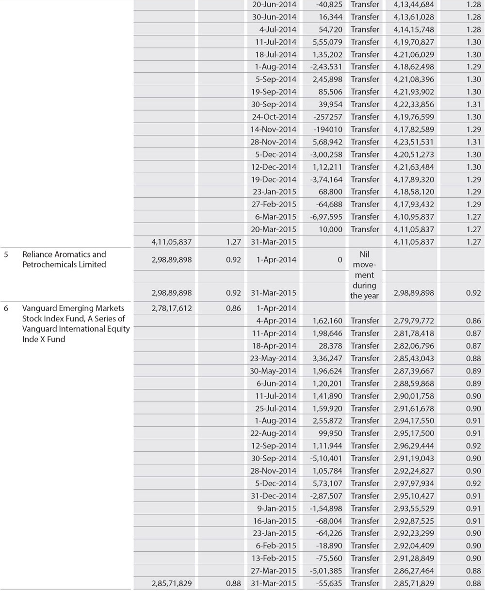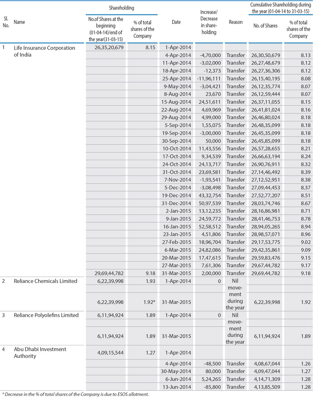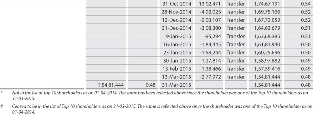 iv) Shareholding Pattern of top ten Shareholders (Other than Directors, Promoters and Holders of GDRs and ADRs)