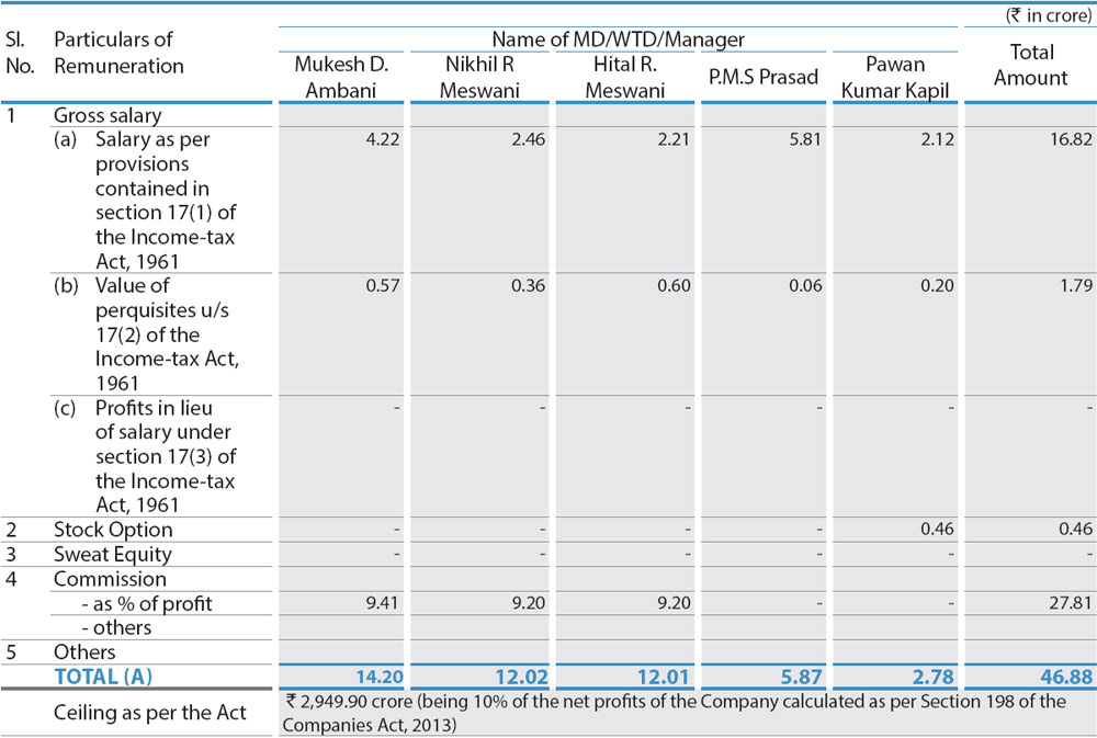 (j) Employee wise details of options granted to: (i) Senior Management Personnel: Shri Nikhil R. Meswani – 14,00,000, Shri Hital R. Meswani - 14,00,000, Shri P.M.S. Prasad - 10,00,000 and Shri P.K. Kapil – 1,00,000 (ii) Any other employee who received a grant in any one year of options amounting to 5% or more of options granted – Nil (iii) Identified employees who were granted options, during any one year, equal to or exceeding 1% of the issued capital (excluding outstanding warrants and conversions) of the Company at the time of grant – Nil; and