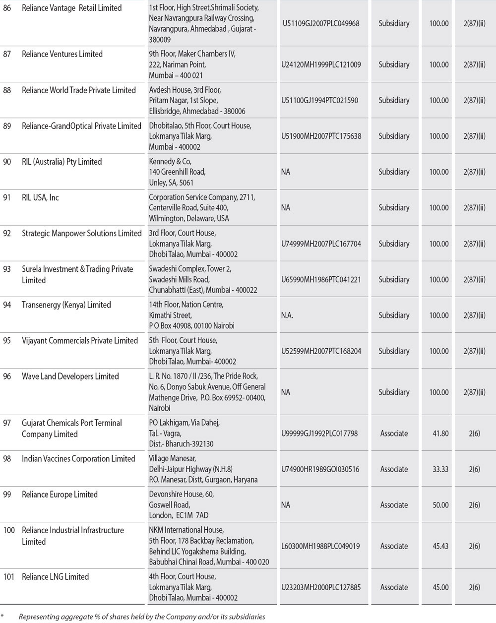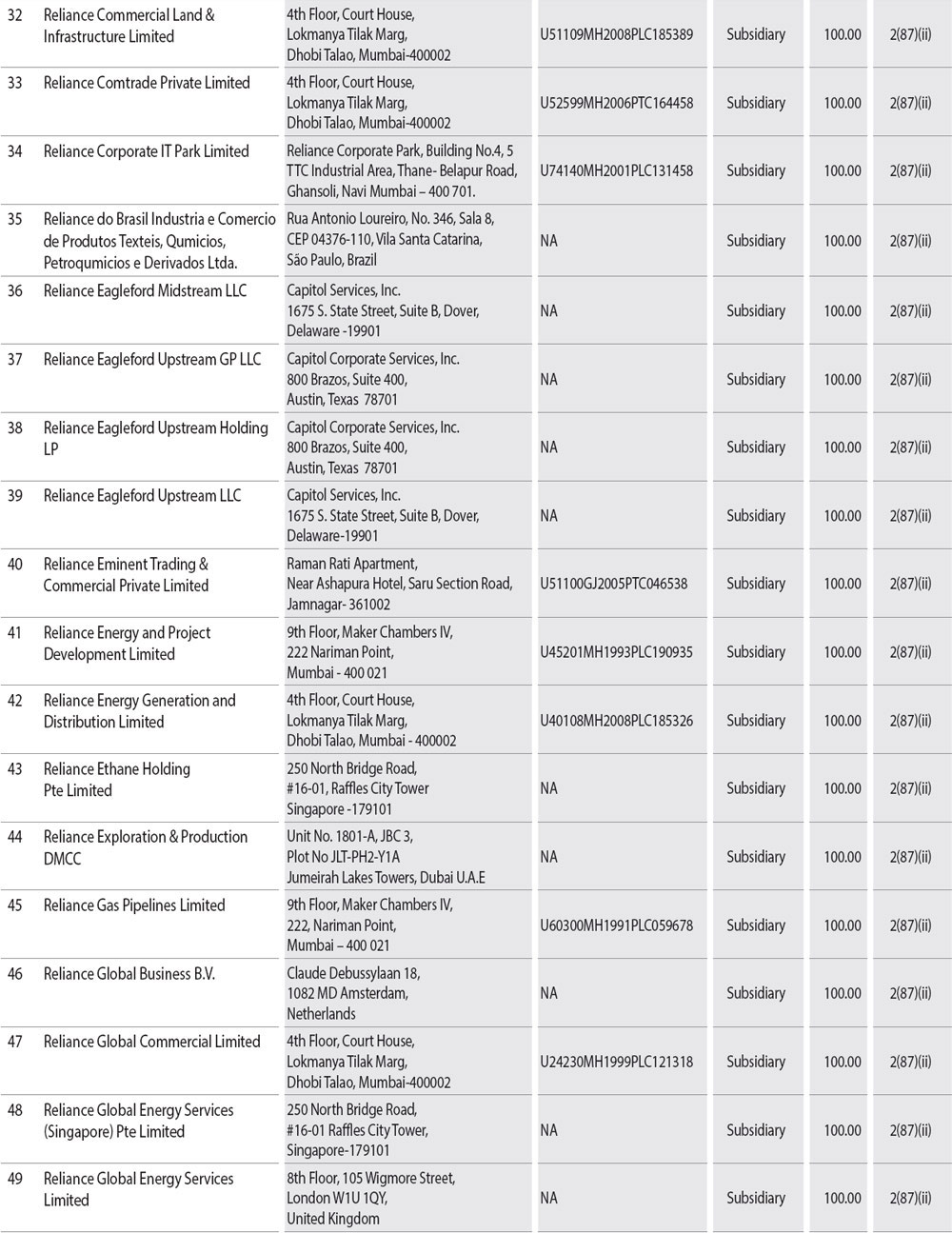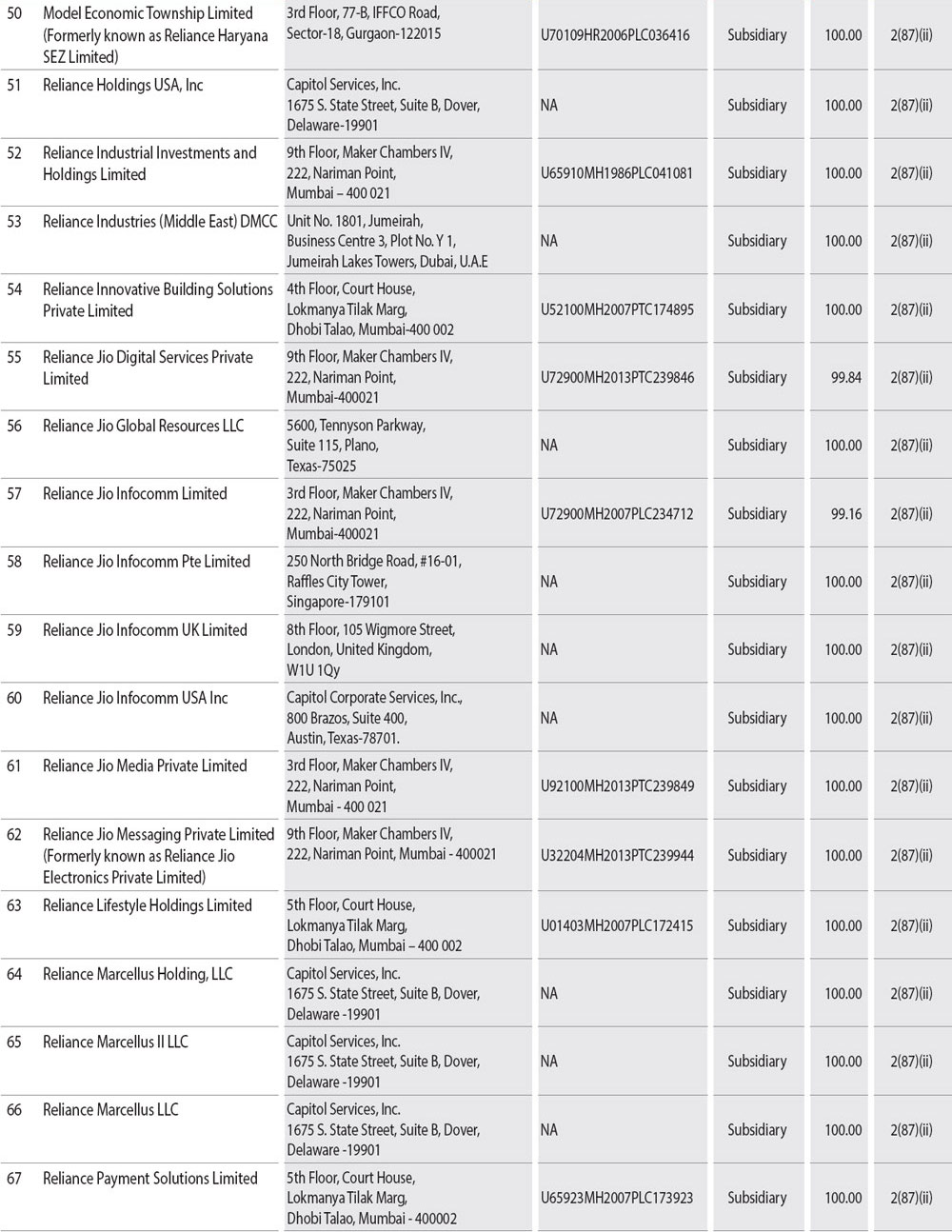 During the year under review, companies listed in Annexure I to this Report have become or ceased to be Company's subsidiaries, joint ventures or associate companies. A report on the performance and financial position of each of the subsidiaries, associates and joint venture companies as per the Companies Act, 2013 is provided as Annexure A to the consolidated financial statement and hence not repeated here for the sake of brevity. The Policy for determining material subsidiaries as approved may be accessed on the Company's website at the link: http://www.ril.com/getattachment/759df65c-9a8d-42ff-a23c-e1c5d892e0c7/Policy-for-determining-Material-Subsidiaries.aspx