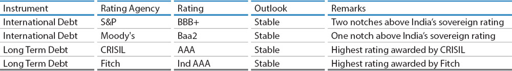 The Company's financial discipline and prudence is reflected in the strong credit ratings ascribed by rating agencies as given below: