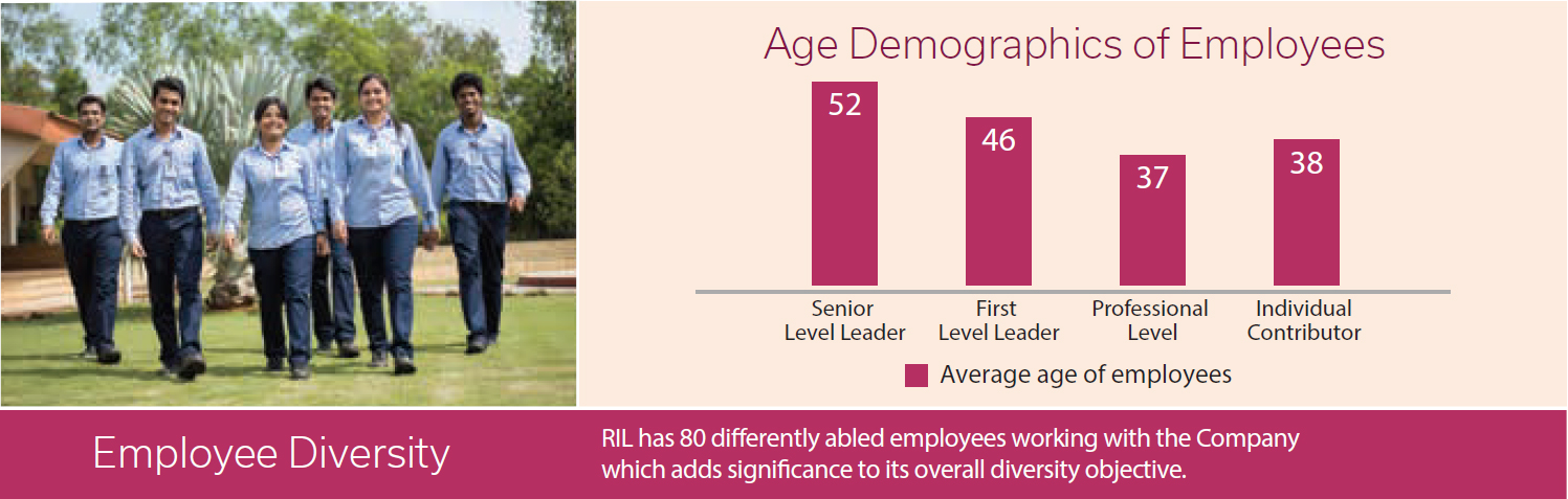 Reliance continued to implement some of the most contemporary practices and processes across the entire employee life cycle. The ‘R-university’ which is a single employee learning entity has been set up to take the quality of learning and development programs to the next level. It has been able to significantly deepen its leadership bench strength across businesses and functions. Decision rights have been delegated, systems have been simplified and digitally enabled. Its “One Reliance” philosophy has allowed Reliance employees to own their careers. The recent focus has been on implementing new leadership development and learning programs. In support of this, Reliance has created various Learning Academies to ensure knowledge management and access to world class training opportunities for its employees.