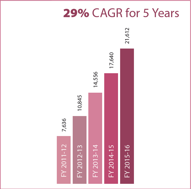 The benefits of low commodity and crude oil prices for RIL's downstream business outweighed the impact of these factors on the upstream segment during FY 2015-16. The refining business delivered a standout performance with record profits underpinned by a multi-year high Gross Refining Margin (GRM) and a record crude throughput. The petrochemicals business also delivered a steady performance aided by strong polymer markets and better volumes. The retail business continued on its high growth trajectory – scaling annual sales of ₹21,612 crore, up 22.5% y-o-y.
