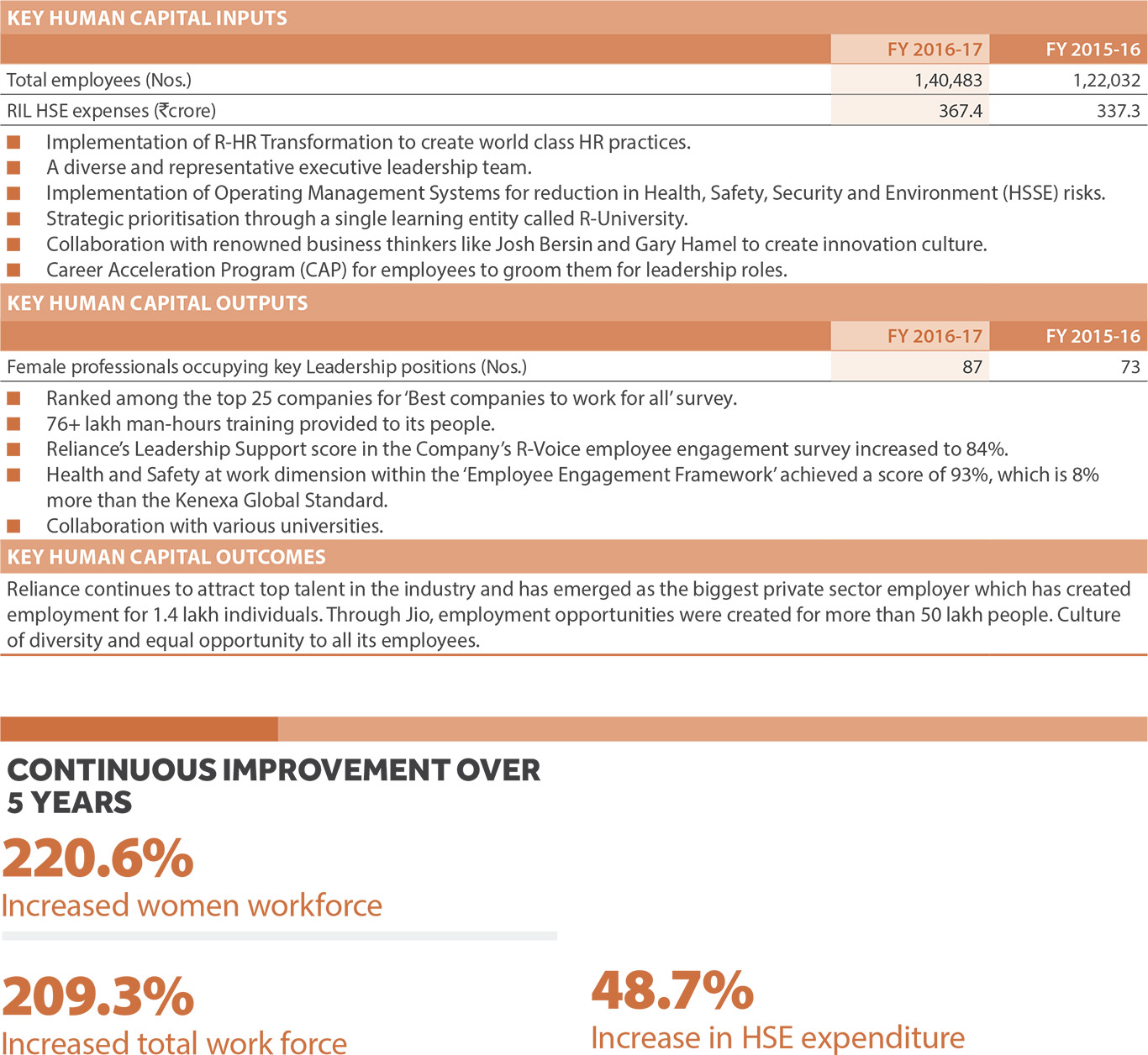 RIL continuously focuses on debottlenecking, capacity enhancement, yield and product quality improvement to enhance its competitive strengths. Examples in FY 2016-17 include: