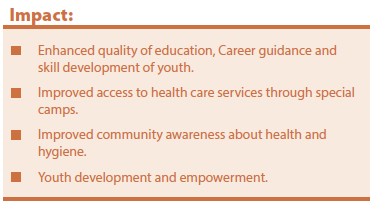 CSR initiatives of Reliance are guided by the three core principles of SCALE, IMPACT and SUSTAINABILITY (SIS). In order to streamline its CSR initiatives, Reliance has identified 7 focus areas: Rural Transformation, Health, Education, Sports for Development, Disaster Response, Urban Renewal and Arts, Culture and Heritage.