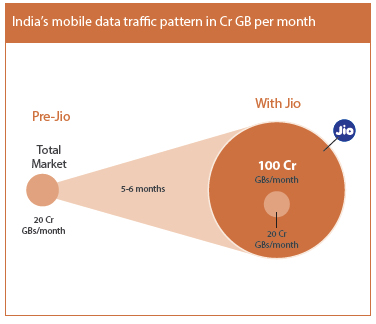 With the advent of Jio in the domestic digital services market, the Indian telecom industry witnessed unprecedented growth in data consumption. Over a 100 million Jio users propelled India into the largest mobile data usage market globally, with monthly data consumption of over 1bn GBs.