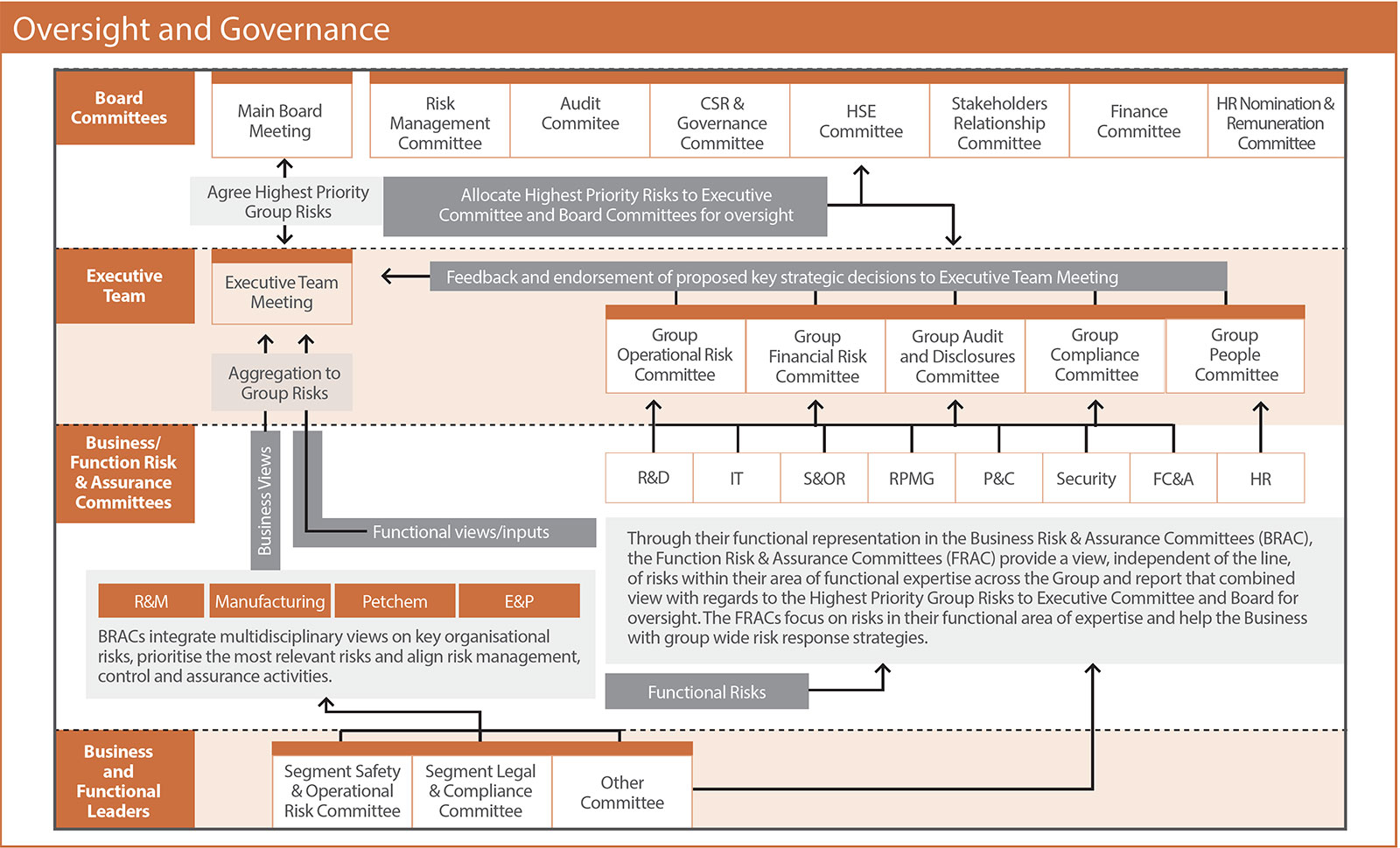 The Group Risk Management Framework is designed to help ensure risk management is an integral part of the way that Reliance works everywhere to enable risks to be identified, assessed and managed appropriately. The Group Risk Management Framework comprises three levels: