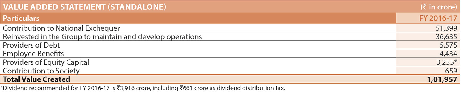 The Board of Directors of the Company has recommended dividend of `11.0 per fully paid up equity share of `10/- each, aggregating `3,916 crore (US$604 million), including dividend distribution tax.