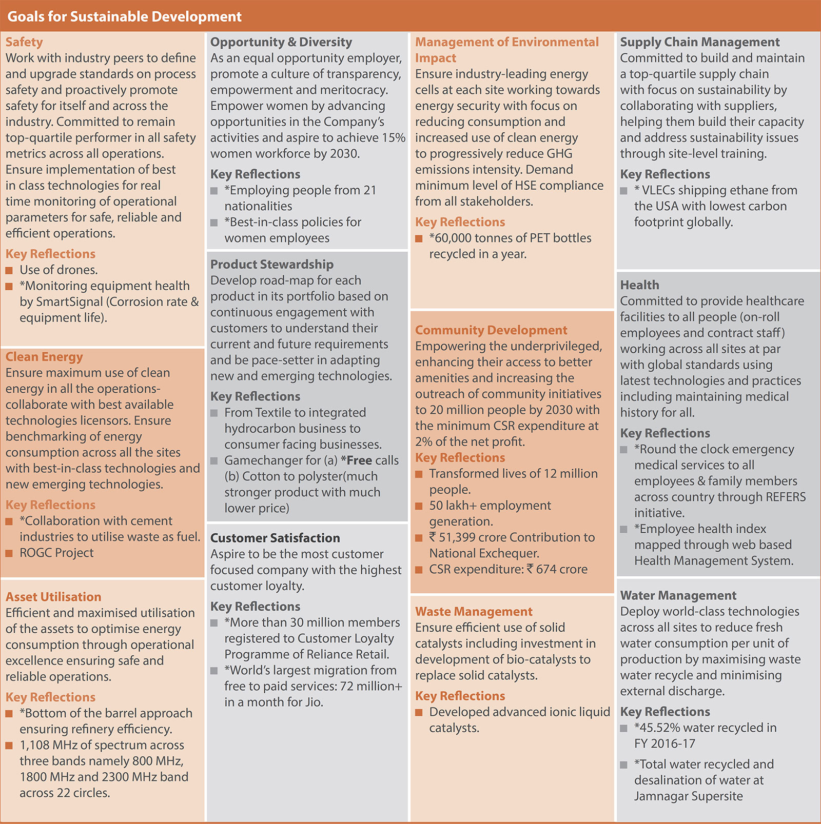 During FY 2016-17, Reliance contributed `674 crore towards Corporate Social Responsibility (CSR).
