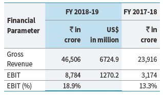 FY 2018-19 marked the coming of age of Reliance’s consumer businesses. From a mere 2% EBITDA contribution in FY 2015-16, consumer businesses now account for 24.6% of RIL’s consolidated EBITDA. During the year, RIL’s segment EBITDA grew by 23% to `87,640 crore, led by record earnings from petrochemicals, digital services and retail businesses.
