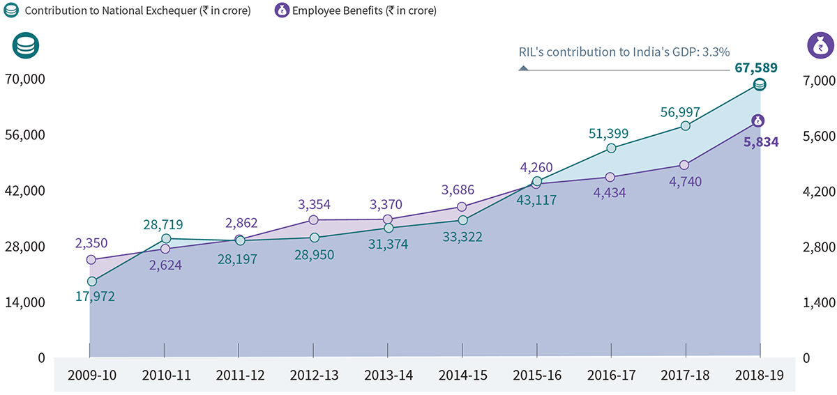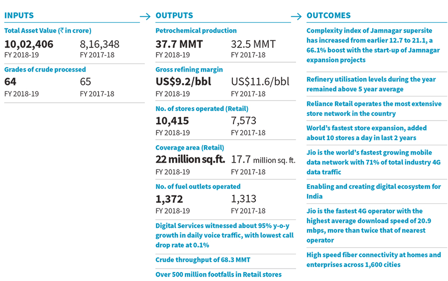 Reliance Retail operated 10,415 retail stores in over 6,600 towns and cities covering an area of 22.0 million sq. ft. as of March 2019. A record footfall of over 500 million was received during the year, a growth of 44% y-o-y. Reliance Retail is now working on plans to launch a differentiated New Commerce platform, which will enable millions of small merchants across the country to compete in a digital age.