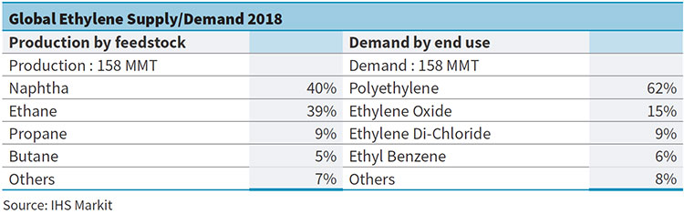 Higher oil prices had an impact on demand across the hydrocarbon chain, with global oil demand growth slowing to 1.2 mbpd in 2018 from 1.5 mbpd in 2017. Key petrochemical feedstock Ethylene demand growth in 2018 also slowed to 3% y-o-y v/s 5.5% growth in the previous year. Volatility in feedstock prices, muted demand and incremental supply from new capacities led to a challenging environment for businesses in the energy chain.