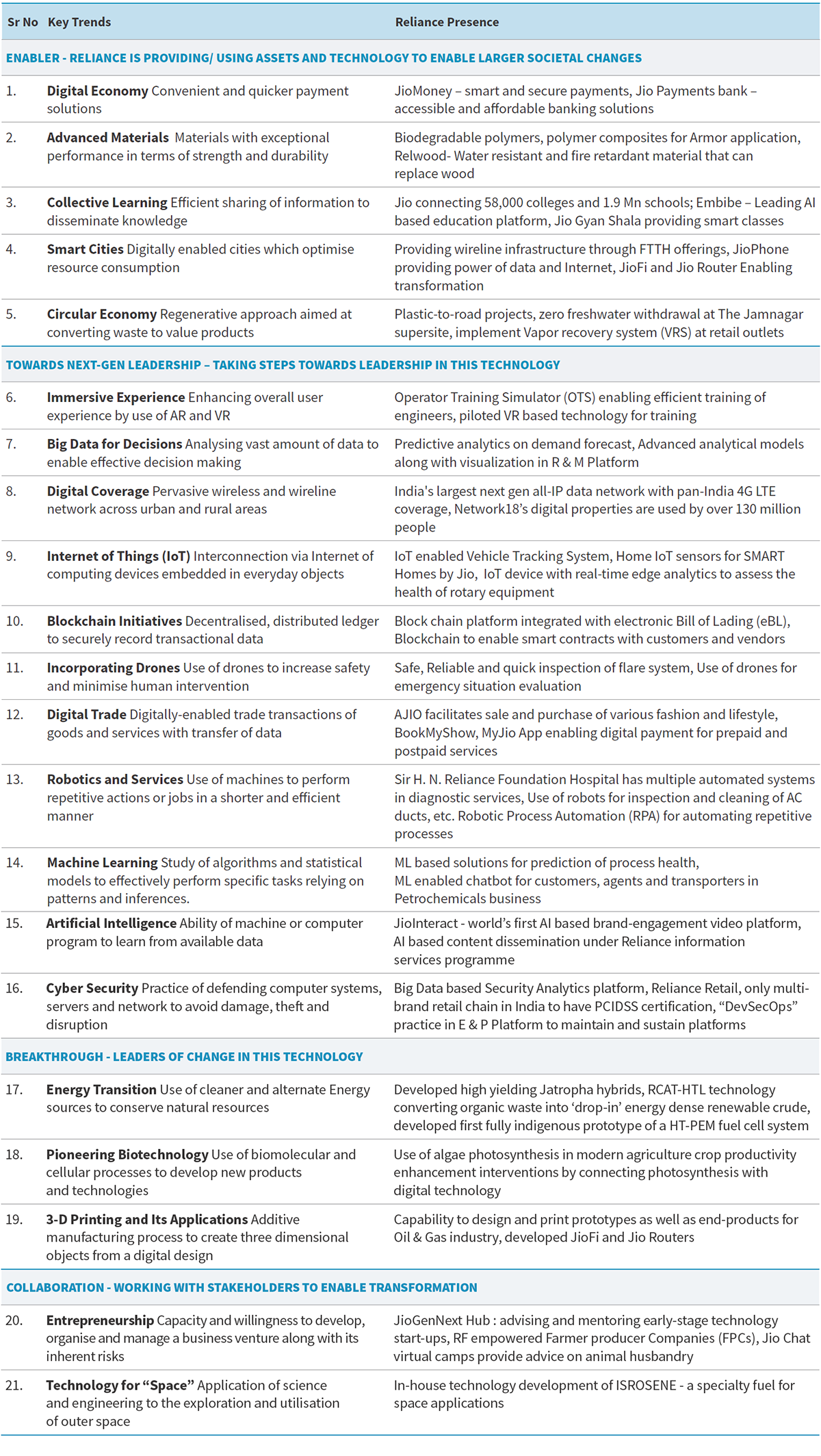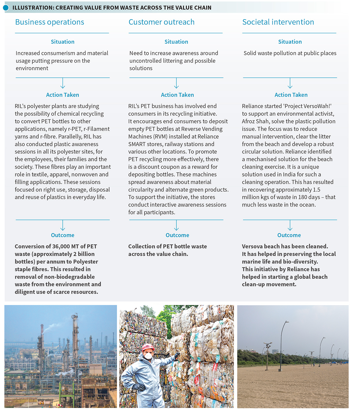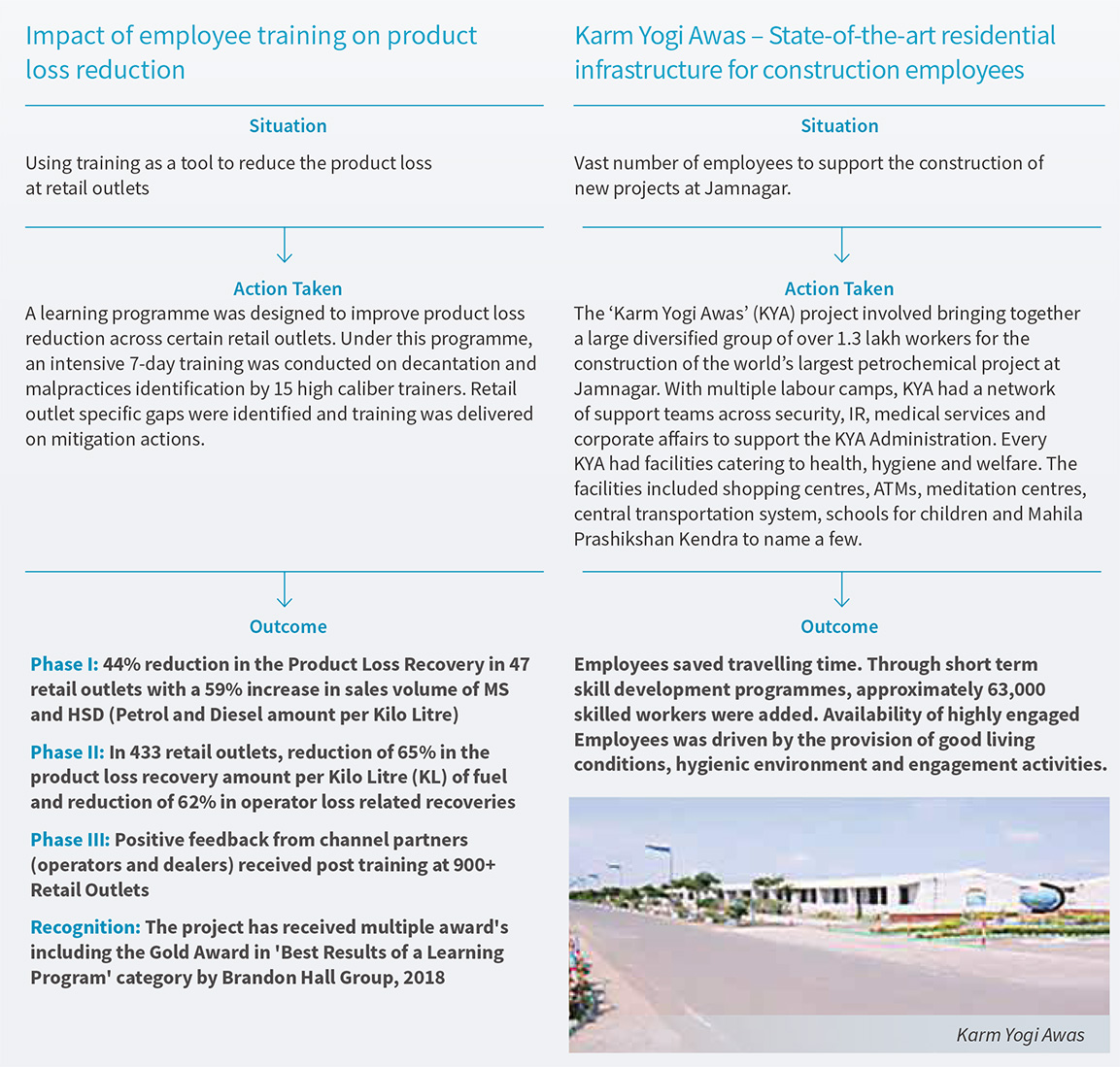 Mitigation: An augmented ship vetting programme ensures that all vessels contracted to carry Reliance cargoes are screened based on risk prior to its induction. For incident response in shipping, formal documentation and cascading have been completed. Reliance is further improving the controls framework for road transportation working hand in hand with Reliance’s contractors. Reliance has supported the contractors in accessing quality training for their drivers and risk mitigation measures during the journey. Reliance has supported capacity building in the key areas impacting transportation safety, viz defensive driving training, route hazard mapping and real time tracking. Reliance’s contractors can use these in an integrated way to deliver safe operations while on contract with Reliance.