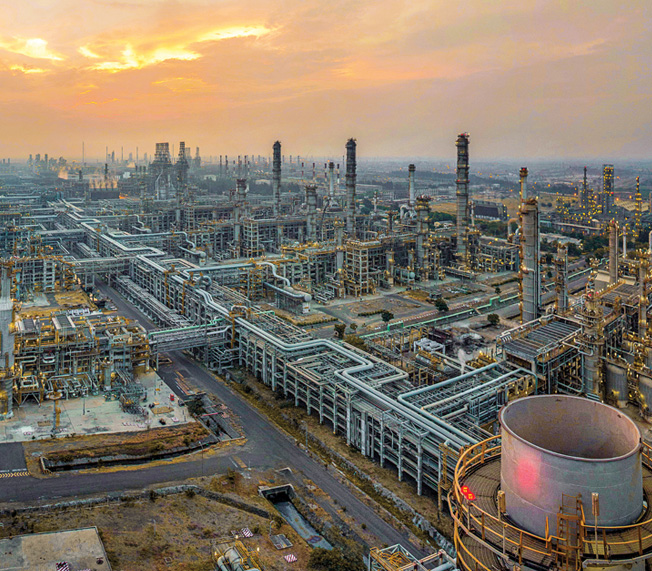 Reliance’s O2C structure enables an integrated decision-making approach to maximise and optimise the entire value chain. The integrated O2C business consists of state- of-the-art manufacturing assets, including a refinery with an integrated off-gas cracker and gasification unit, aromatics, multi-feed and gas crackers, downstream manufacturing facilities, logistics and supply-chain infrastructure.
