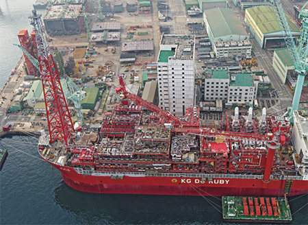 For the Floating Production Storage & Offloading (FPSO) vessel , hull construction has been completed. All topside modules have been fabricated and erected on the hull.