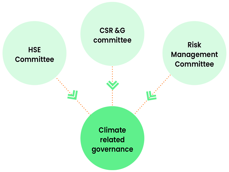 The HSE Committee has broad oversight on climate-related governance. The HSE Committee, CSR & Governance and the Risk Management Committee oversees Company's ESG initiatives.